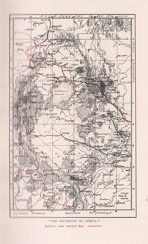 First edition. 282 pages, frontispiece bound next to the half-title page, 3 maps, 22 full-page black and white plates, light foxing, uncut edges, blue cloth with gilt vignette of Africa on the upper cover, the same vignette and titled gilt on the spine, the boards and edges are scuffed and worn, a good copy.