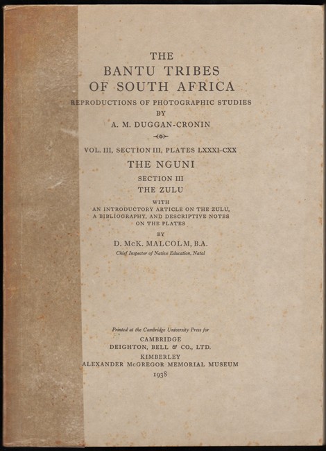 Vol. III, Section III, Plates LXXXI – CXX. The Nguni, Section III, The Zulu, with an introductory article on the Zuluk a bibliography, and descriptive notes on the plates by D.McK. Malcolm.