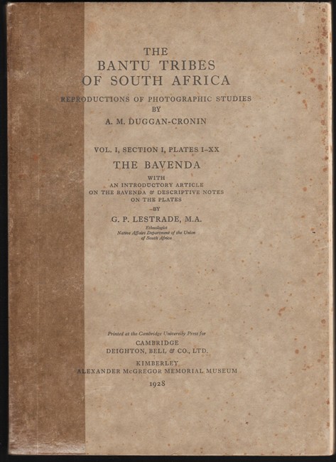 Vol, I, Section I, Plates I – XX, The Bavenda, with an introductory article on the Bavenda & descriptive notes on the plates by G.P. Lestrade.