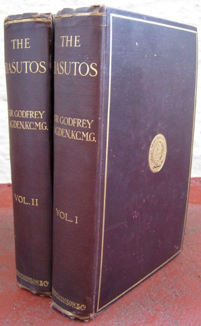 Being a narrative of events relating to the tribe from its formation early in the nineteenth century to the present day. Vol 1 - xvi, 337p, frontispiece portrait, 70 ills, 5 maps, 1 fold-out map at rear. Vol 2 - xii, frontispiece, three maps. Photocopy of plate inserted on p.402 in Vol 2. Brown cloth boards with gilt emblem on front, gilt lettering on spine. teg. Previous owner\'s name in ink on ffep. Foxing throughout and spotting to edges. Covers the period of Basuto history from 1820 to 1909.