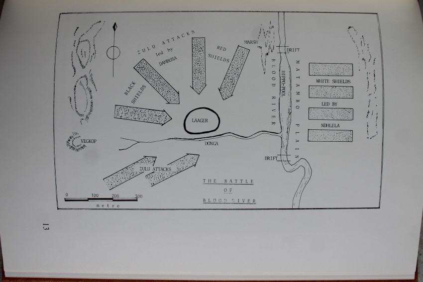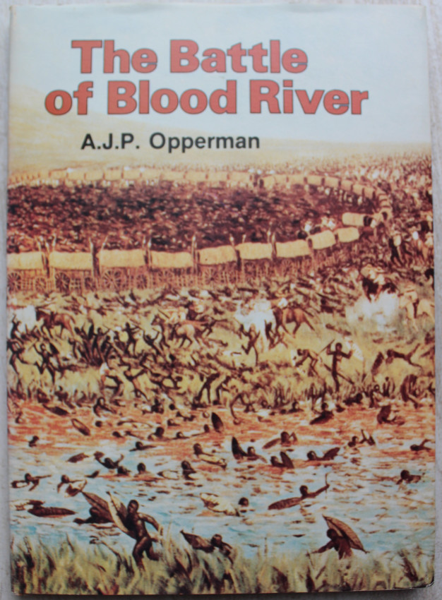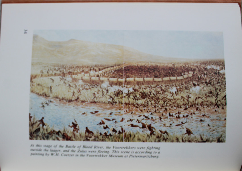 Publisher's tan hardcover binding with panoramic dust jacket depicting the Battle of Blood River.