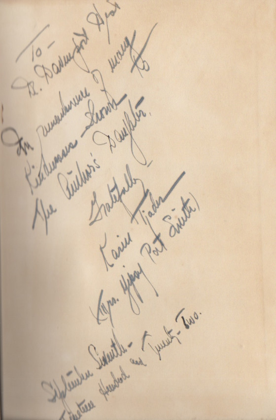 area near Mt. Elgon, along the Athi and Tana Rivers and the Guaso Nyiro, with hunts after lion, buffalo, rhino, and numerous antelope species. This includes a 51 page guide to the Ki-Swahili language. Original green cloth with embossed lion head on the front cover and bright gilt titles. Titles to spine a little dulled but quite legible. Corners lightly bumped. Original endpapers firm and tight. Bottom corner of p. 85 torn off with no loss of text. Well illustrated with photo plates and folding map. This copy SIGNED AND INSCRIBED BY THE AUTHOR'S DAUGHTER on the free front endpaper.