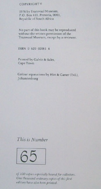CONDITION DETAILS: There is a 5cm long cut at the bottom of the page with the illustration of the Bataleur Eagle. Signs of use, a few small soil marks and abrasion marks on the rear end papers. This is an acceptable copy of a scarce edition with no pen inscriptions or major flaws.