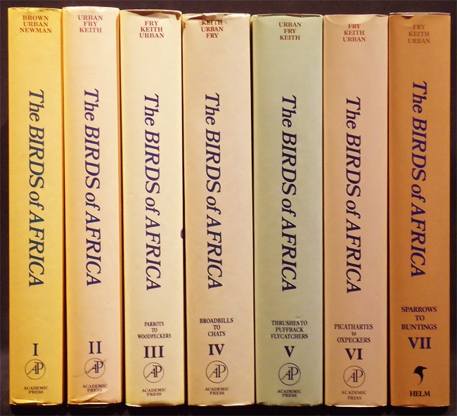 7 volumes, the series complete in seven volumes, more than 4000 pages, numerous colour plates by Martin Woodcock, Peter Hayman and Ian Willis, other illustrations in the text and range maps, brown cloth gilt, bookplate of Peter Steyn, the well-known ornithologist, on the front paste-down endpaper of each volume, a very good set in the dust jackets.