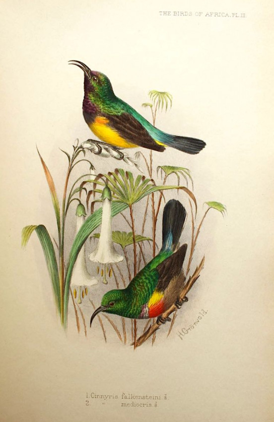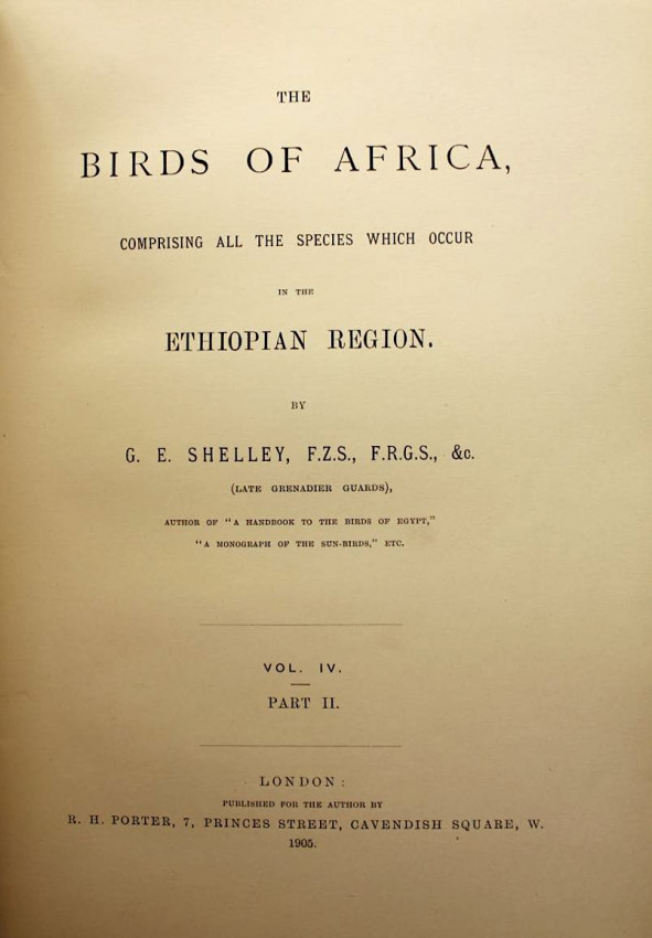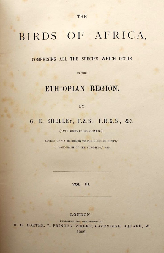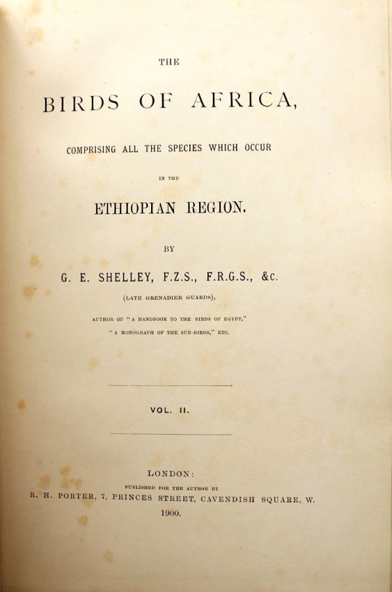 The author, Captain George Ernest Shelley (1840-1910) was an English geologist and ornithologist. He had quite the literary pedigree as his uncle was the English Romantic poet who wrote the famous poem Ozymandias and his aunt wrote a classic Gothic horror novel about a monster brought to life by a bolt of electricity.