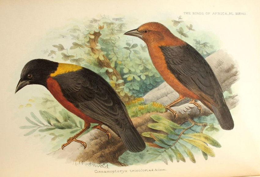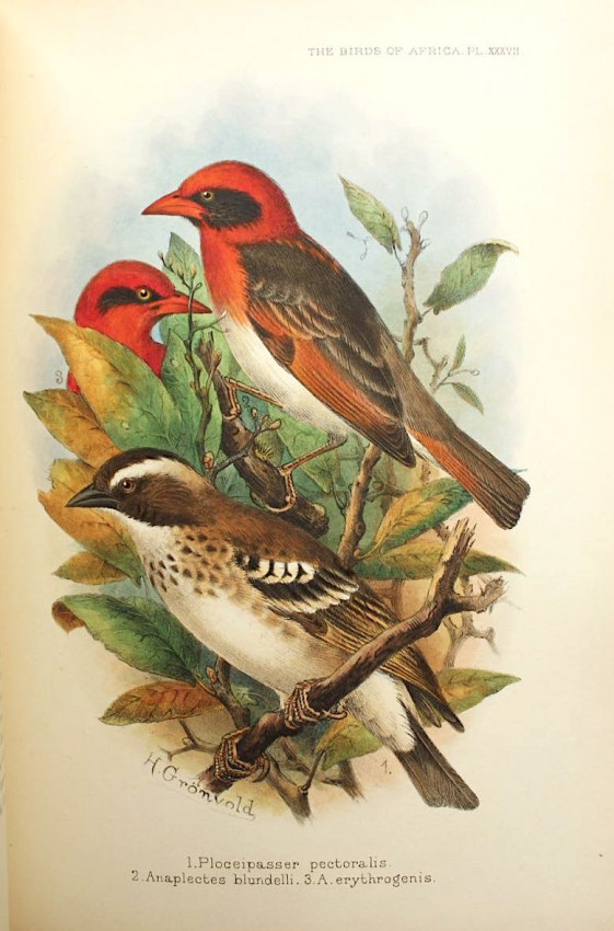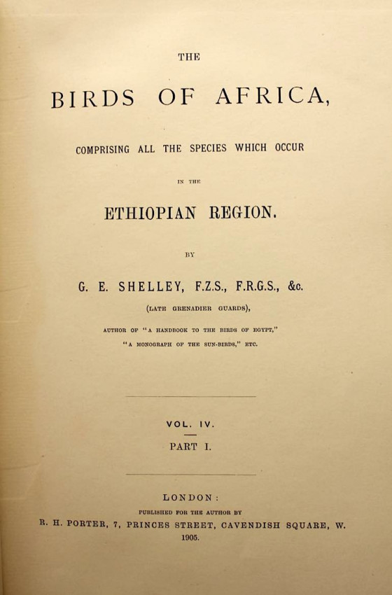 This set was completed by vol. 5 in 2 parts (1906-1912) which included plates 43-57. The second part of vol. 5 was completed and edited by W. L. Sclater from the author's notes after his death.