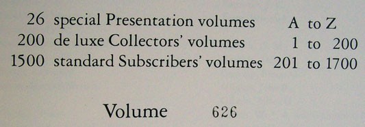 Copy number 626 of the Standard Subscribers' Edition limited to 1,500 copies. The entire edition was limited to 1,726 copies.
