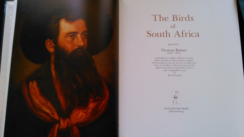 This book is the complete collection of ninety bird studies, beautifully painted by Baines, together with descriptions from the text of C.J. Andersson's "Notes on the Birds of Damara Land and the adjacent Countries of South-West Africa”. It took over 100 years to gather together these paintings. Some are painted in oils but mostly in watercolors, based on sketches and drawings made on Baines' travels in South Africa in the 1860s.