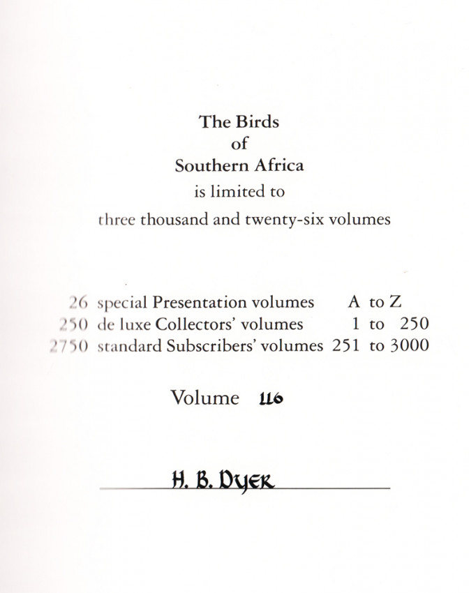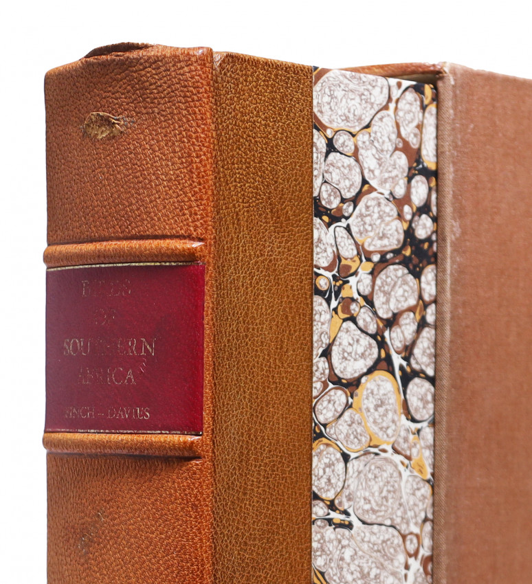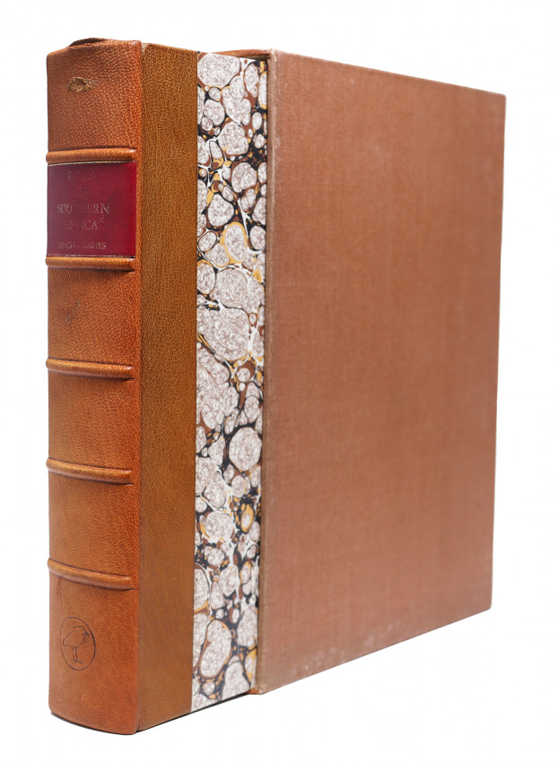 De Luxe edition: 488 pages, colour frontispiece of a Blue-cheeked Bee-eater, portrait of Finch-Davies, 176 colour plates, half brown morocco with matching marbled boards, red title label gilt on the spine which is now slightly faded, a very good copy in the matching brown cloth slip case with marbled paper sides.