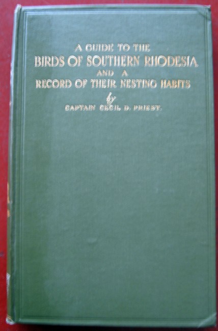 Four vol set of The birds of Southern Rhodesia. Plus Guide to Birds of Southern Rhodesia and a record of their nesting habits(1929). Ex-library set, with stamps to spines. Blue cloth boards with gilt lettering to spine, teg. Corners are bumped on all four volumes. Colour folding map, 40 colour plates with tissue guards and 521 ills. uncut pages. Ex-library sticker on front paste-down. Guide is green cloth with gilt lettering (1929) xix, 233p.14 colour plates and numerous b/w etchings. Comprehensive guide to birds of Southern Rhodesia.