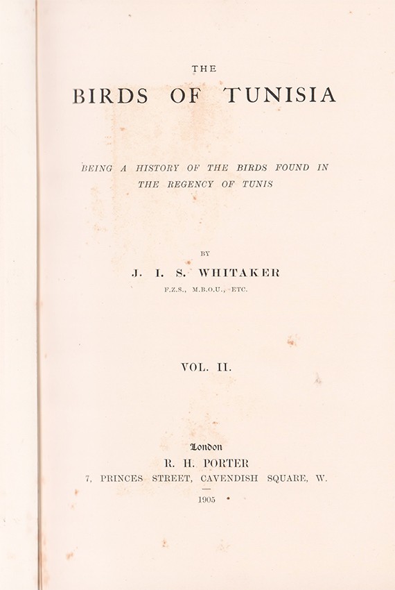 Joseph Isaac Spadafora Whitaker (Palermo, 19 March 1850 – Rome, 3 November 1936) was a Sicilan-English ornithologist, archaeologist and sportsman. He is mainly known for his work on the birds of Tunisia, and for being involved in the foundation of the Sicilian football club U.S. Città di Palermo.In 1891, already a very keen ornithologist, Whitaker joined the British Ornithologists' Union. Collecting expeditions to Tunisia followed. These extended over a period of ten years (1894–1904). Notebooks kept at the time contain information on the natural history of the birds as well as other fauna and also the flora of Tunisia.The Tunisian bird and bird nest and egg collection was housed in a villa in the grounds of his home “Malfitano” Some of Whitaker's collection of Tunisian birds are in the Natural History Museum, London. https://en.wikipedia.org/wiki/Joseph_Whitaker_(ornithologist)