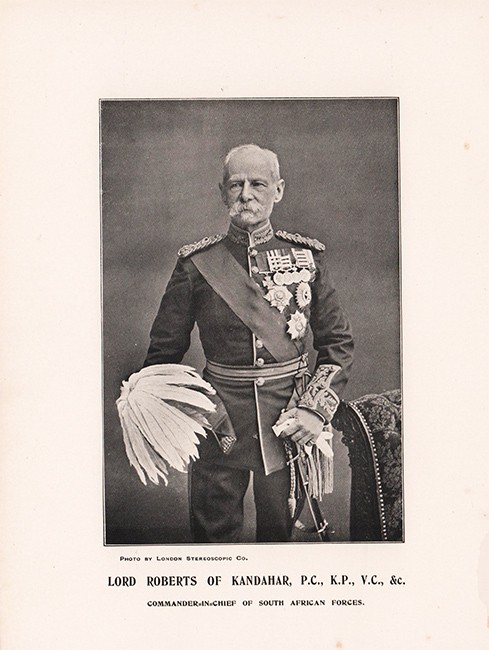 316 pages, portrait of Lord Roberts as frontispiece, 9 plates, original khaki coloured cloth, titled gilt on the upper cover and spine, printed on newsprint quality paper which is browned, a very good copy.