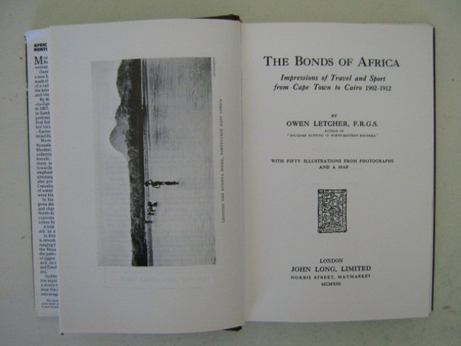 The author recounts his travels and hunting expeditions in areas such as Rhodesia, British East Africa (Kenya), Uganda, Potuguese East Africa,the Rift Valley, and as far as Egypt.