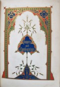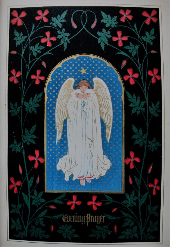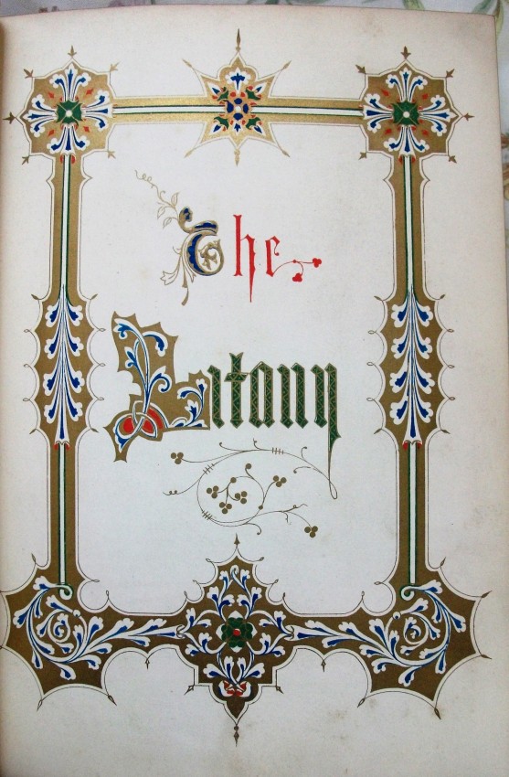 Full bound in vellum with red and gilt decorations and title in gilt on red spine label. Hand-marbled endpapers. All page-edges gilt. 2 plain leaves front and back. xl pp of illustrated introduction, services, ceremonies, lessons, calendar and tables and rules, printed in black and red + 1 plain leaf + inserted main title-page designed by Owen Jones (an architect) and illuminated in gilt, green, red, blue, brown and black + 484 pp of illustrated text pages printed in black and red and sometimes additional colours, with vignettes, initials, borders and ornaments designed by Owen Jones + 6 further inserted illuminated section title-pages designed by Owen Jones.