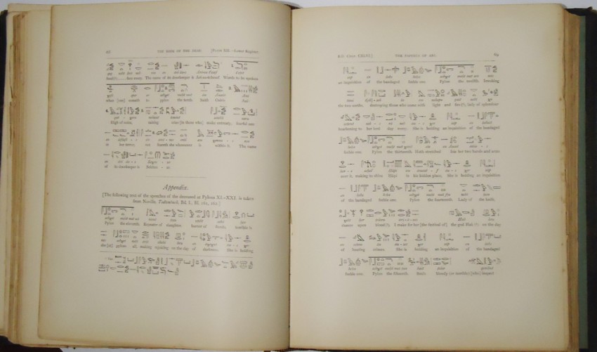 The first volume was published to accompany the second Facsimile edition of the Papyrus of Ani which was originally published in 1890 without any text volume. This book contains the hieroglyphic text of the Papyrus with interlinear transliteration and word for word translation, a full description of the vignettes, and a running translation: and in the Introduction, an attempt has been made to illustrate from native Egyptian sources the religious views of the people who more than five thousand years ago proclaimed the resurrection of a spiritual body and the immortality of the soul.
