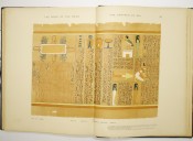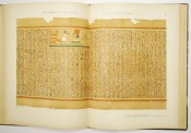It contains a number of chapters of the Book of the Dead, nearly all of which are accompanied by vignettes; and at top and bottom is a border of two colours-red and yellow. At the beginning and end of the papyrus spaces of six and eleven inches respectively have been left blank. The inscribed portion is complete, and the loss of the few characters which were damaged in unrolling does not interrupt the text. It was written by three or more scribes; but the uniformity of the execution of the vignettes suggests that fewer artists were employed on the illustrations. The titles of the chapters, rubrics, catchwords, etc., are in red. In some instances the artist has occupied so much space that the scribe has been obliged to crowd the text (e.g., in plate 11) and at times he has written it on the border (see plates 14, 17). This proves that the vignettes were drawn before the text was written.