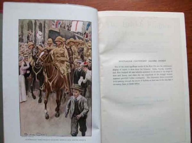 Volume 5-Frontispiece showing Australian Contingent leaving Sydney for South Africa- viii,plus 414 and 8 pages advertising.Chapter XV The War in South Africa(contnued) through to end of Chapter XVI with 12 colour plats with tissue guards from South African War.Further chapters with other Colonial Activities..
