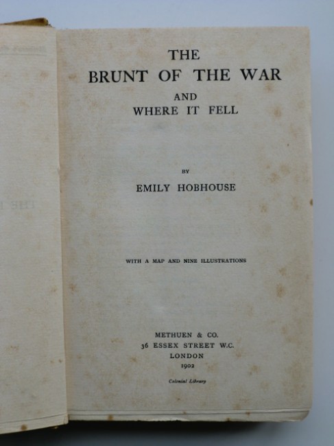 With a map and nine illustrations. This classic book offers a fascinating insight into the life of women and children in the Boer war, as witnessed first-hand by the well-known British welfare campaigner Emily Hobhouse. In three parts: Part 1, 1900; Part 2, 1901; Part 3, 1902. 356pp. with folding colour map and 40 page Methuen catalogue.