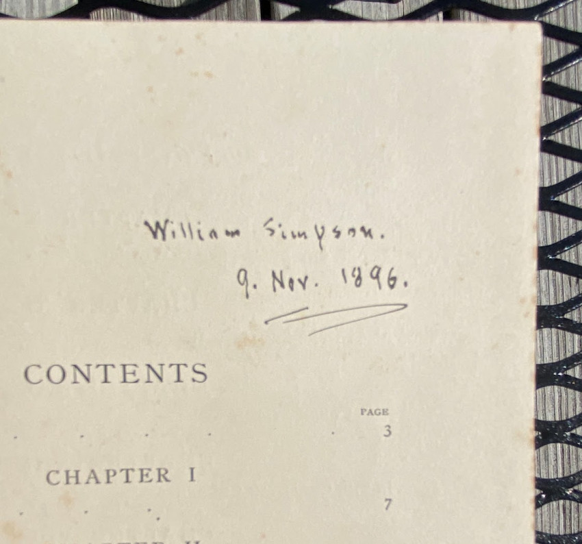 Provenance: William Simpson (bookplate, inscription dated ‘9 Nov. 1896’, typed letter signed from Grant Allen to the author loosely inserted).