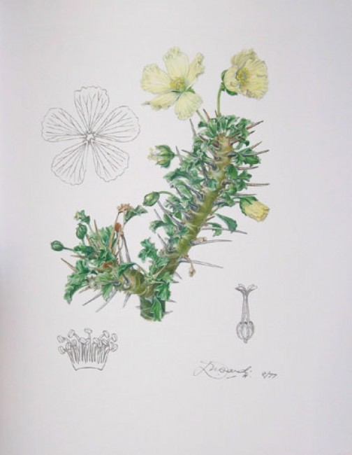 Original dust jacket. Original grey coloured cloth boards with gilt titling on the spine and the upper board. Pictorial end papers after a drawing by Bowen Boshier. Silk place marker. xiii prelims, 194 pages, full colour plates by Ellaphie Ward-Hilhorst and Gerhard Marx, colour photographic illustrations of plants in their original habitats, by Connall Oosterbroek and others, pencil work by Bowen Boshier.