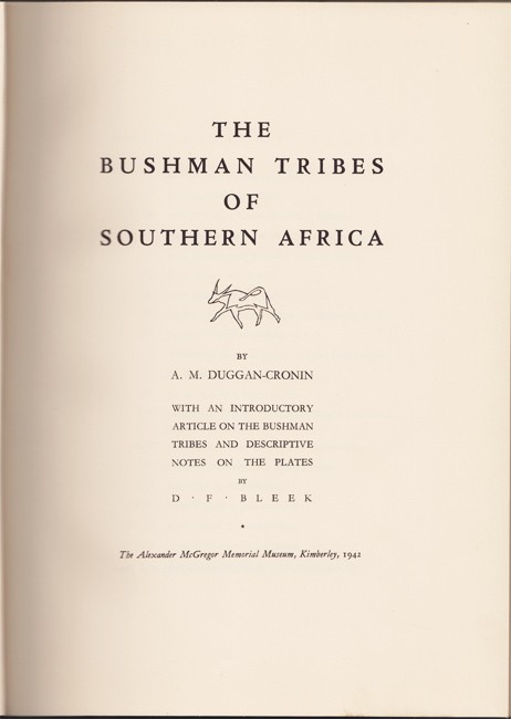 With an introductory article on the Bushman tribes and descriptive notes on the plates by D.F. Bleek.