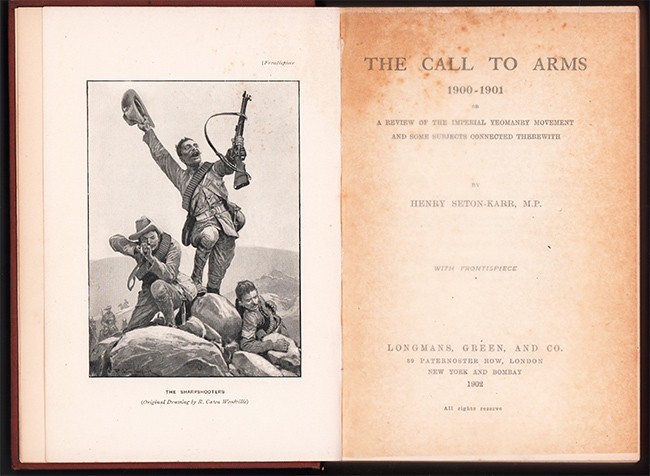 From the preface: 'The original intention of this book was to place on record, for the information of those whom it might concern, the story of the Mounted Sharpshooters Corps; how it came into existence,; some details of its recruiting; also such available information of the doings of the battalions in South Africa as might serve to illustrate the quality of the Corps as a part of the Imperial Yeomanry Force, and thus to justify, if this were necessary, its existence as a military body. In the course of carrying out this intention I have found it difficult to avoid, or have been unable to resist the temptation, endeavouring to deal in an amateur way with kindred matters of more general interest, such as the national crisis which brought the Imperial Yeomanry Force, as a whole, into being.'