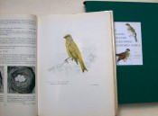 Housed in a custom built slip case by master craftsman Peter Carstens with green coloured cloth covered boards, a pictorial inset on the upper side, hand marbled paper and leather trim.