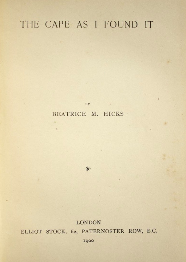 Publisher's brown cloth binding. Gilt embossed vignette of Table Bay and Table Mountain on the front panel.