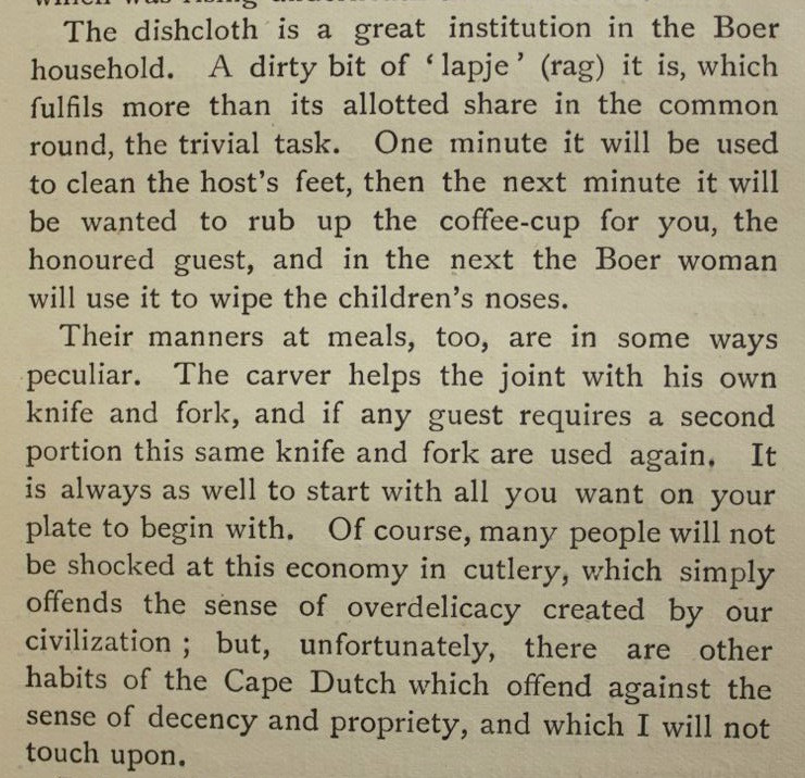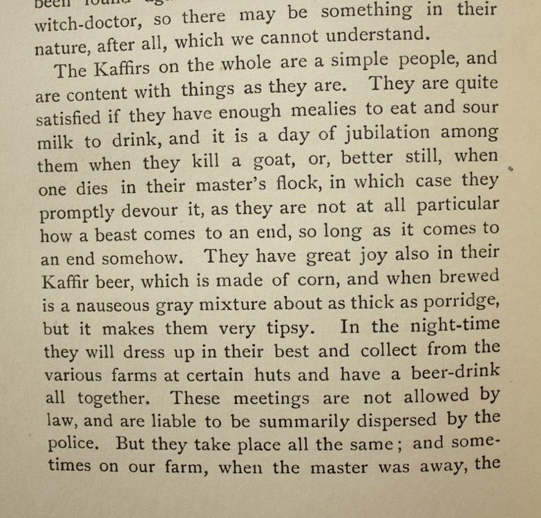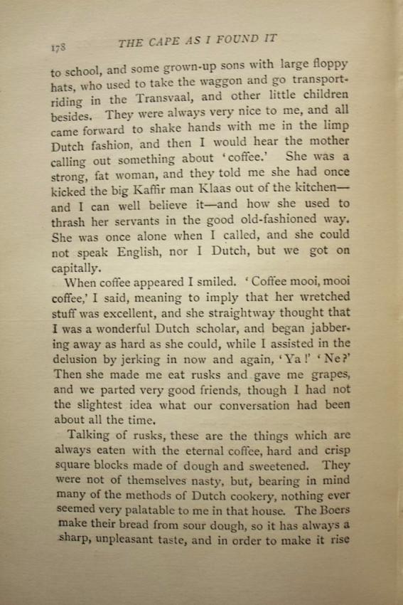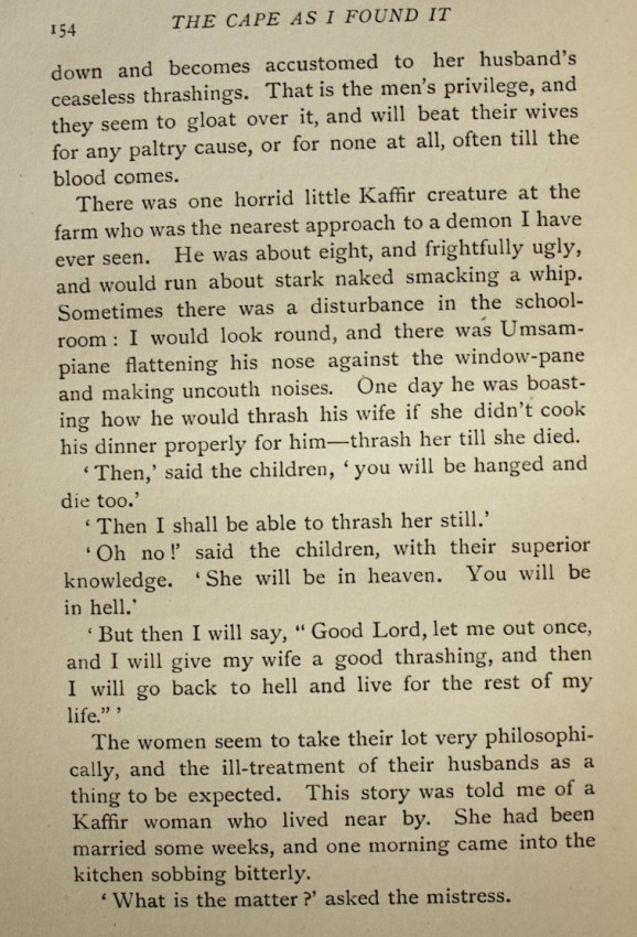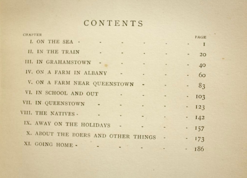 'The authoress spent over two years in a farm near Queenstown, and states her views upon the subject of colonial manners, Dutch, British, and native. The account of Grahamstown is full of good-natured criticism of the somewhat stiff, social habits of the inhabitants of that "saintly" city, and much sly fun is poked at the religious jealousies prevailing, and the internecine disputes which agitated the authorities of "The Diocesan School for Girls."' - Mendelssohn Vol.I, page 711