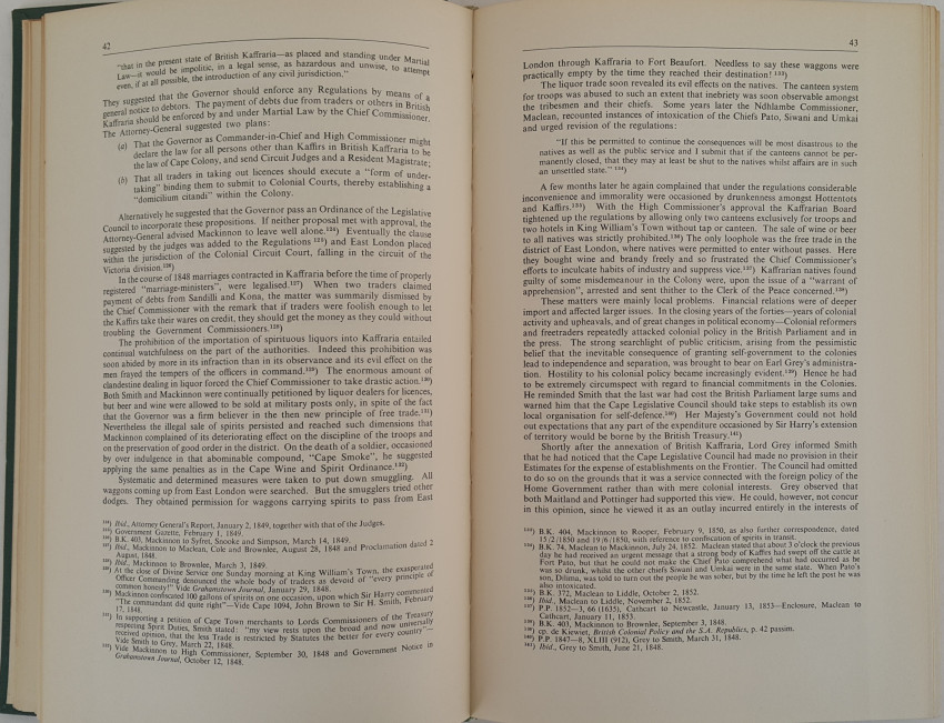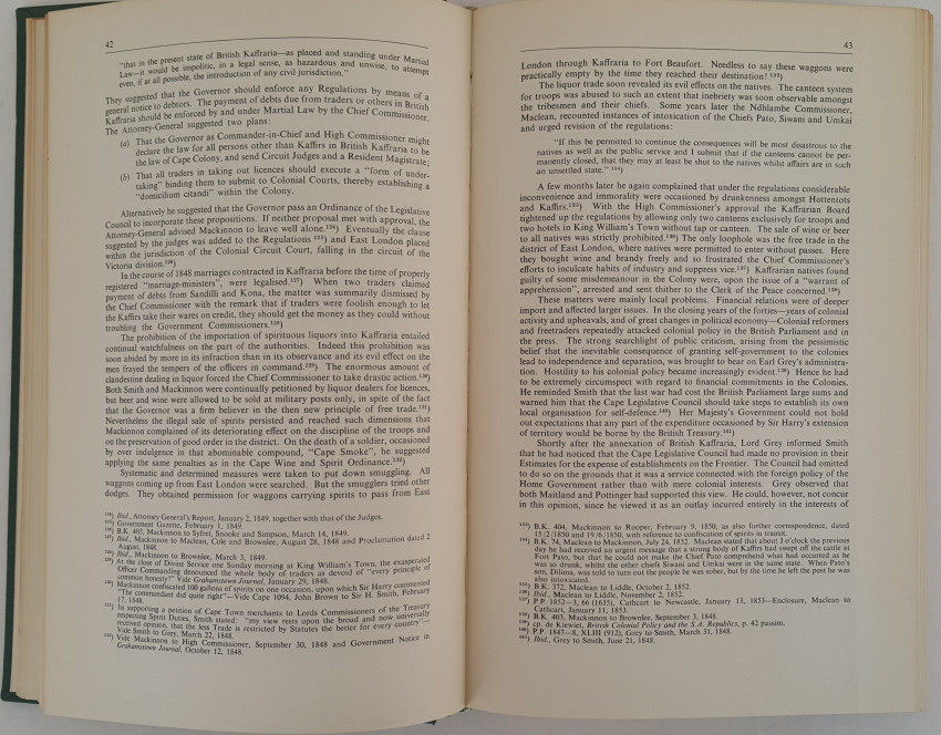 This doctoral thesis is packed with fine detail on a most interesting subject. Four contending forces interacted on the Frontier independently and often in contrary directions: The Colonists; The Natives; The Governors and the Colonial Office in Downing Street. To what extent were political decisions determined by economic forces? What was the impact of European civilization on the tribal system? Were Gubernatorial decisions made in the best interests of natives and colonists, or were they determined by Whitehall? The author attempts to answer these and other important questions. vii - 313 Pages.