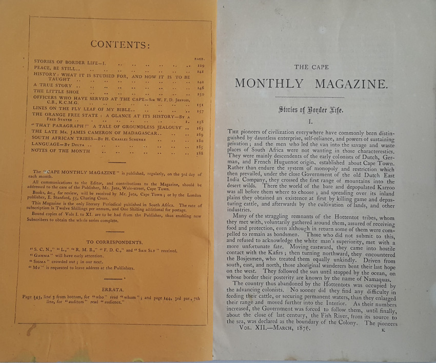 This was, in its day, the only Literary Magazine published in South Africa. It is crammed with information of historical interest from early days. Wrappers are sometimes stained, or worn, but these specimens are in generally good condition, with clean texts.