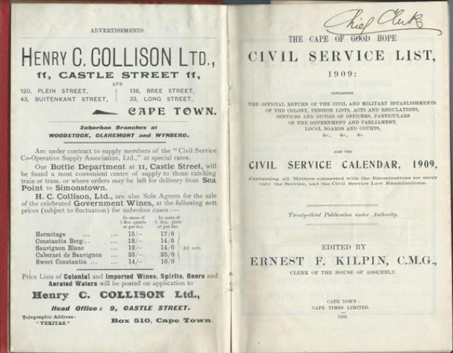Ernest F. Kilpin was Clerk of the House of Assembly. Lists every civil servant, with date of appointment, salary and allowance, etc. Includes full and very detailed biographies of all senior civil servants. A useful tool for any genealogical researcher.