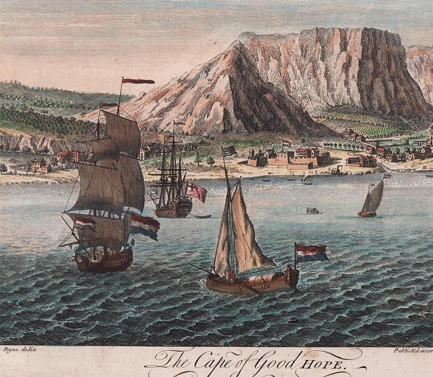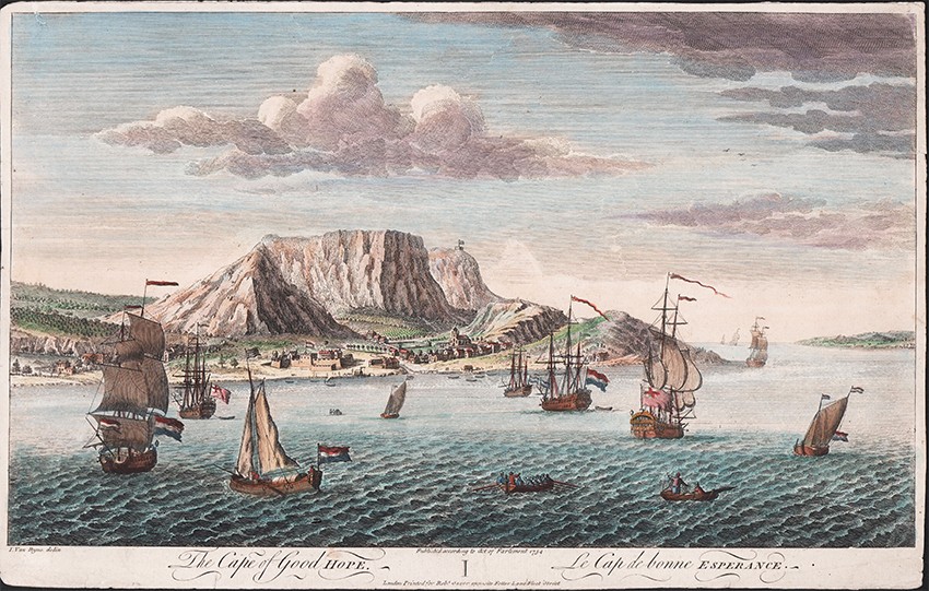 Gordon Brown (Alfred) Pictorial Africana page234: Van Ryne 1712 – 1760. A Dutch artist , he was believed to have worked in London about 1752 -55 when he made an interesting engraving of Table Mountain and Table Bay, first published by Robert Sayer in 1754.