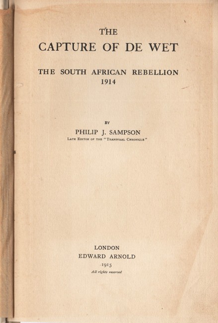 Sampson chronicles the capture of the legendary Boer general in late 1914 - a capture which, as De Wet often complained, was effected not by men on horseback but by the motor-car!
