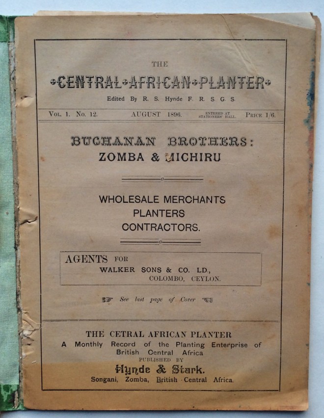 Songani, Zomba, British Central Africa: [Blantyre Mission Press for] Hynde & Stark, September -October 1895, January-March, May- August 1896.