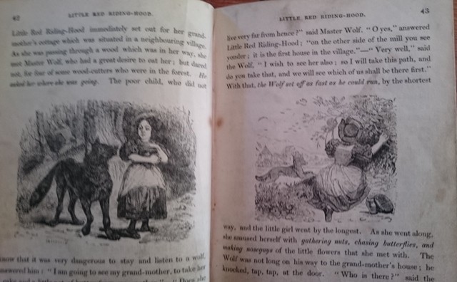Undated, c1840’s; Joseph Thomas, London. 18mo, 11 x 14cm; 172pp. Quarter black leather with dark green stippled boards; 5 gilt bordered panels to spine. Engraved frontis and title and charming engravings throughout text. Announcement from the publishers on a prelim page about the forthcoming publication of Child's Fairy Library Series IV.