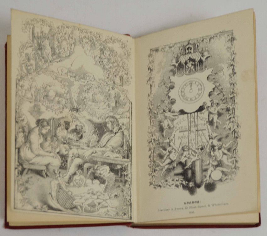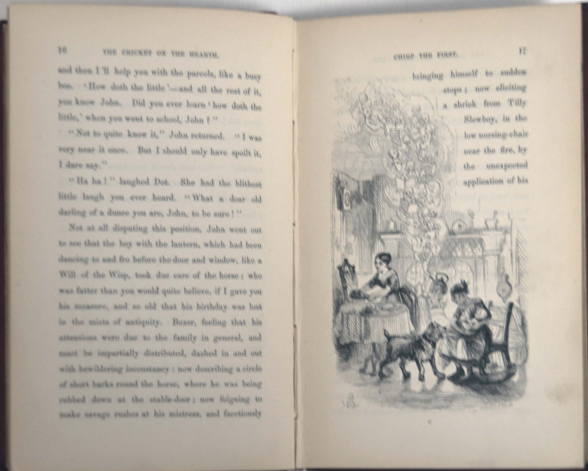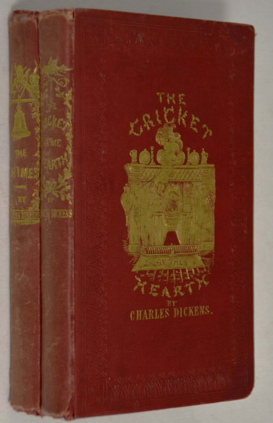 2. The Cricket and the Hearth. 1846. Bradbury & Evans. 174 pages of text with engraved frontispiece, title page and engravings by the same artists as the above volume. The advert leaf at the end is in the second state where Oliver Twist is recorded as 'New Edition'. In the original gilt embossed cloth with the gilt decoration on the front board bright. Rear joint cracked but firm and inner hinges intact.