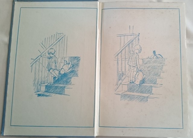 First Edition 1929; Methuen & Co. Ltd., London. Octavo, 7.5” x 5”, x [1] 171 plus 8 pp. Blue cloth boards with gilt border, titles, and illustration to front, and gilt titles to spine. Illustrated throughout by Shepard. Illustrated pastedowns in blue.