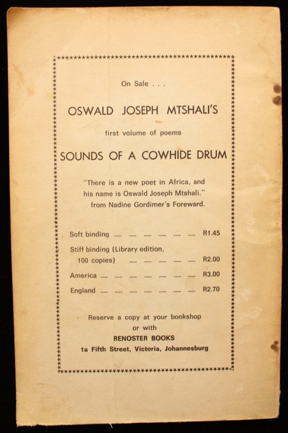 This magazine contains eight of some of the earliest published photographs of Hasselblad prize-winning photographer David Goldblatt, three of which later appeared in 'Some Afrikaners Photographed' of 1975.