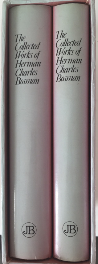 Brown paper-board slipcase with pasted-down colour portrait of Bosman on one face and lettering on the other, laminated unclipped colour dustjackets, brown cloth-boards with black lettering to the upper panels and spines, plain endpapers, Vol 1 [vi]/723 pp, Vol 2 [vi]/594 pp
