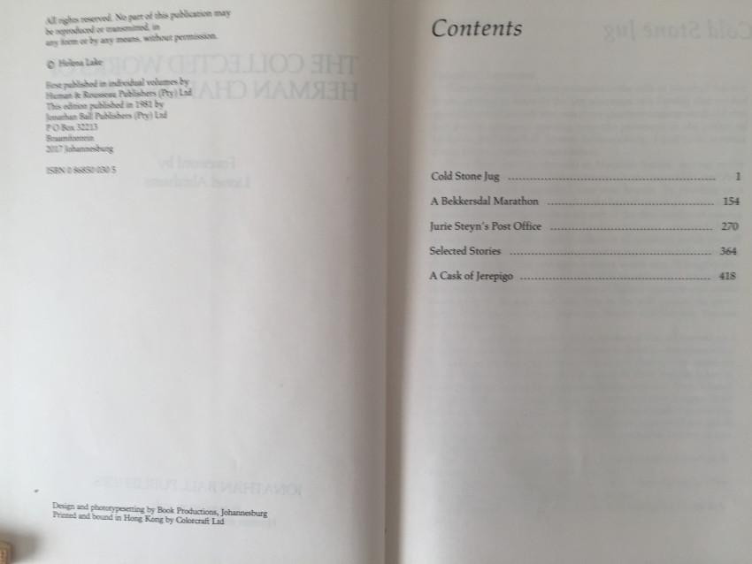 - Mafeking Road, Cold Stone Jug, A Cask of Jerepigo and other stories