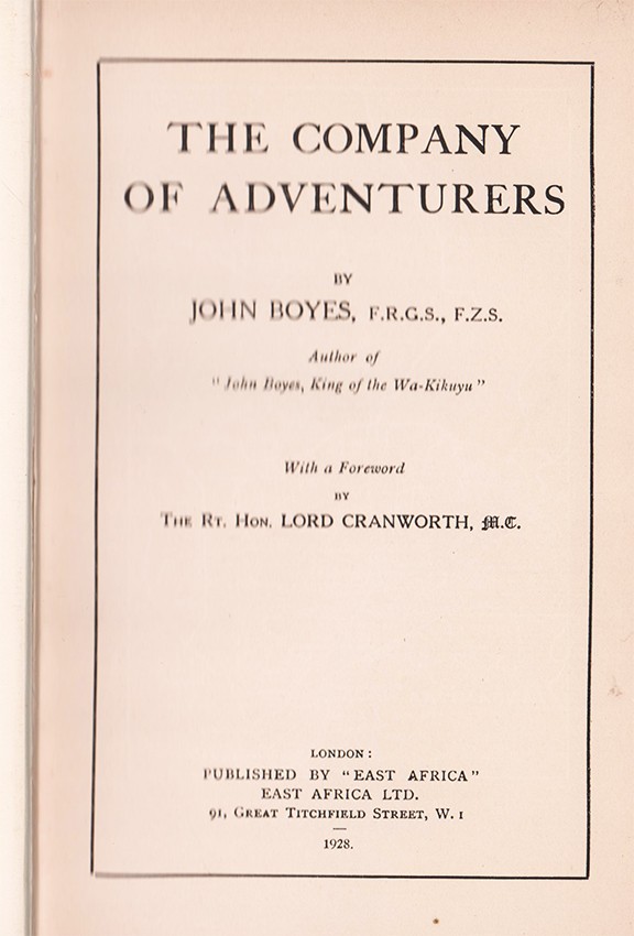 Czech (Kenneth) Bibliography of African Big Game Hunting Books 1785 -1999, page 33: Boyes recounts his adventures in East Africa particularly hunting elephant in the Lado Enclave, and on safari with W.N. McMillan and C.W.L. Bulpett neat the Donyo Sabuk for lion and rhino. There are additional excursions to Kikuyu land and Abyssinia.