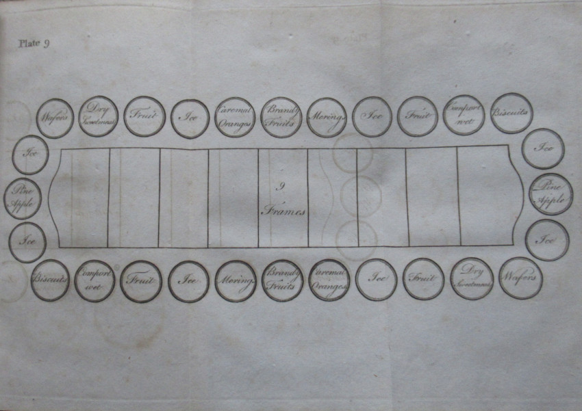 Contents included are: BISCUITS, WAFERS,DROPS, PRAWLONGS, etc, JELLIES, etc, JAMS, etc, ESSENCE FOR ICES, WATERS, etc FOR ROUTS,ICE CREAMS, NATURAL CREAMS, WATER ICES OF ALL SORTS, FRUITS PRESERVED IN BRANDY, PRESERVED SWEETMEATS, WET. FRUITS, DRIED. LIQUEURS. CHEESE. PUDDINGS.HOME-MADE WINES.
