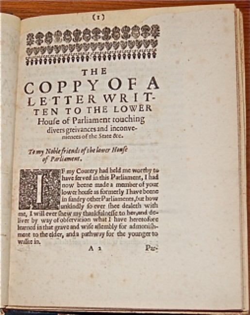 First edition (pp. [24], mispaginated at p.14). Small quarto (18 cm) in 19th century three-quarter blue morocco over complimentary marbled paper; gilt titles and decoration, t.e.g., sprinkled edges, marbled epps. The writer, an erstwhile Member of Parliament who may or may not have been JS, reminds the House of the utility of free speech in the search for truth (as did Milton) and of the inadvisability, fiscally and morally, of frivolous wars. This short work has been attributed to the poet John Suckling (1609- 1641?), a man of many parts not all of which were congruent. Suckling was of course a more than middling poet in the lineage of Donne but, as he says of himself, “... loved not the Muses so well as his sport;/ And prized black eyes, or a lucky hit/ At bowls, above all the Trophies of Wit”. He was at once a spendthrift cavalier (He sold a great tract of land in order to finance the arming and outfitting of a sort of Praetorian guard whom he thought to lead into battle), a courtier who financed and produced suitably expensive and elevated entertainments for Charles I, an ardent but easily distracted lover, and a famous wit. Certain of his letters, however, portray a thoughtful and well-disposed writer of marital advice (as to his sister) and sound political principle (as, for example, in his letter of 1640 to Henry German advising “the king on how to deal with widespread popular disquiet”). He is also credited with inventing, if that is the word, the game of cribbage (anything for a bet, Sir John). See Tom Clayton’s biographical sketch of Suckling in ODNB for a great deal more. A handsomely bound, bright copy. Quite scarce.
