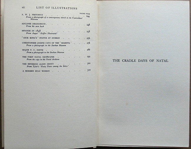 After the days of Vasco da Gama when the country was "made red with the blood of Portugal" most of the settlers in Natal for a period of three hundred years were survivors of shipwrecks: and their sufferings and adventures are here graphically described. In 1824 cane the first real settlement, and thereafter the history is largely one of the wars and massacres and heroic struggles, for eighteen vital years, until Natal under a British Governor was annexed to the Cape.