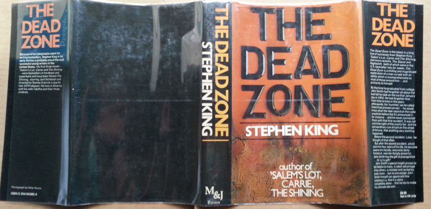 The Dead Zone is a science fiction thriller novel by Stephen King published in 1979. The story follows Johnny Smith, who awakens from a coma of nearly five years and, apparently as a result of brain damage, now experiences clairvoyant and precognitive visions triggered by touch. When some information is blocked from his perception, Johnny refers to that information as being trapped in the part of his brain that is permanently damaged, "the dead zone." The novel also follows a serial killer in Castle Rock, and the life of rising politician Greg Stillson, both of whom are evils Johnny must eventually face. (wikipedia.com)