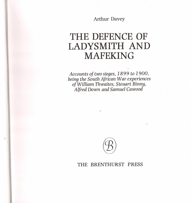 Accounts of two sieges, 1899 to 1900, being the South African War experiences of William Thwaites, Steuart Binny, Alfred Down and Samuel Cawood