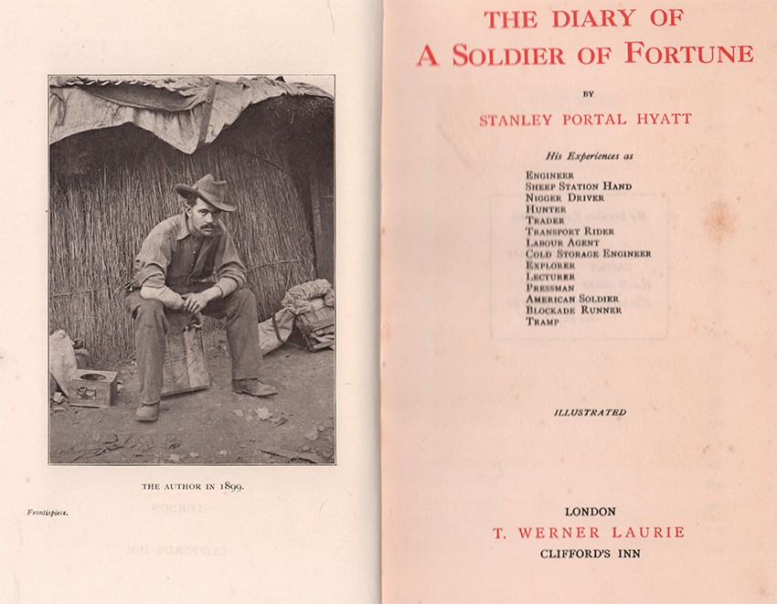 Stanley Portal Hyatt (2 January 1877 - 30 June 1914) was an English explorer, hunter, and writer. Hyatt left his comfortable family home and struck out around the world c. 1896. He arrived in Africa to seek his fortune during 1898. In his written works, Hyatt describes his life and experiences in Australia, Rhodesia and the Philippines. He wrote fluently and skilfully about life on the road, and about his fellow-riders and his animals. Hyatt had a bitter contempt for commercially inspired progress, vehemently defending the underdog whenever he could, and was a savage critic of The Establishment. The Old Transport Road and The Diary of a Soldier of Fortune are his famous works.https://en.wikipedia.org/wiki/Stanley_Portal_Hyatt