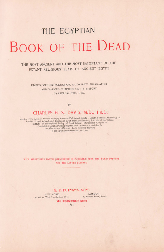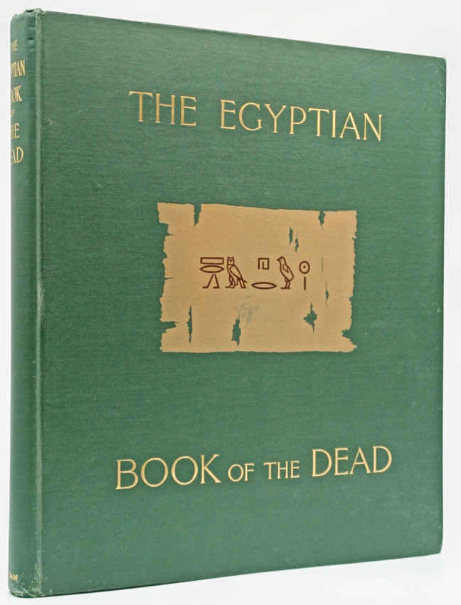 186 pages of letterpress,99 facsimiles from the papyrus, the front free end paper opposite the title page has been folded in half,green cloth pictorial boards with title gilt on the upper cover and spine, a very good copy.