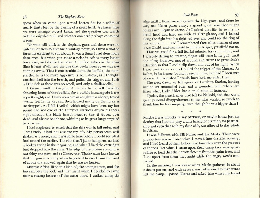 The author's experiences, as told to George Leith, of a wandering life in (mainly) East Africa - loner, hunter, poacher, known to the natives as "Mongaso"; East Africa big game hunting poacher.